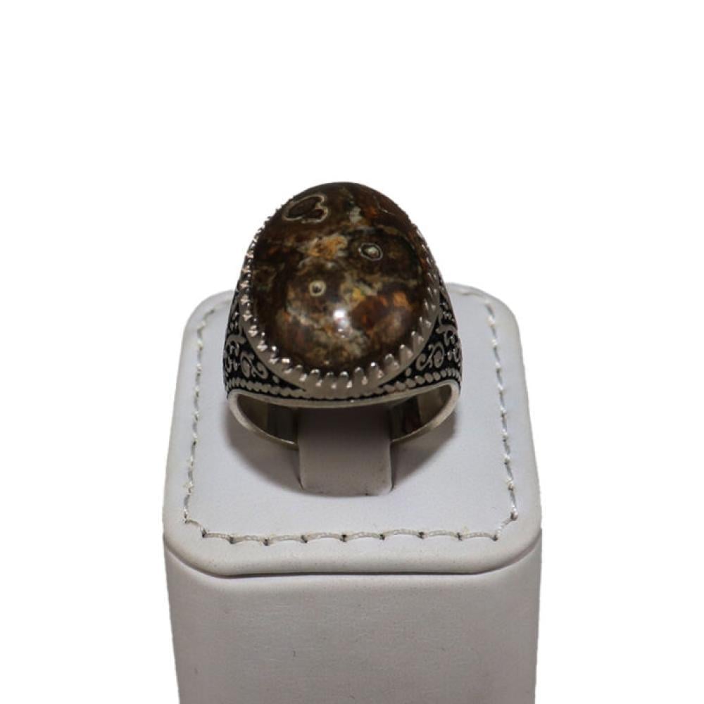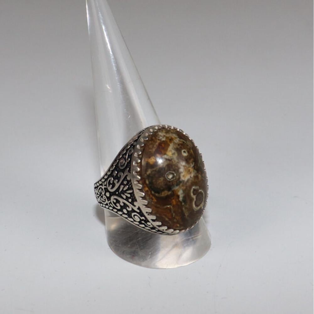 • في وسطه قطعة من العقيق اليماني الفاخر المصقول بشكل رائع و بتداخلات الوانها تعطي مزيج مختلف يزيد من جمال الخاتم .