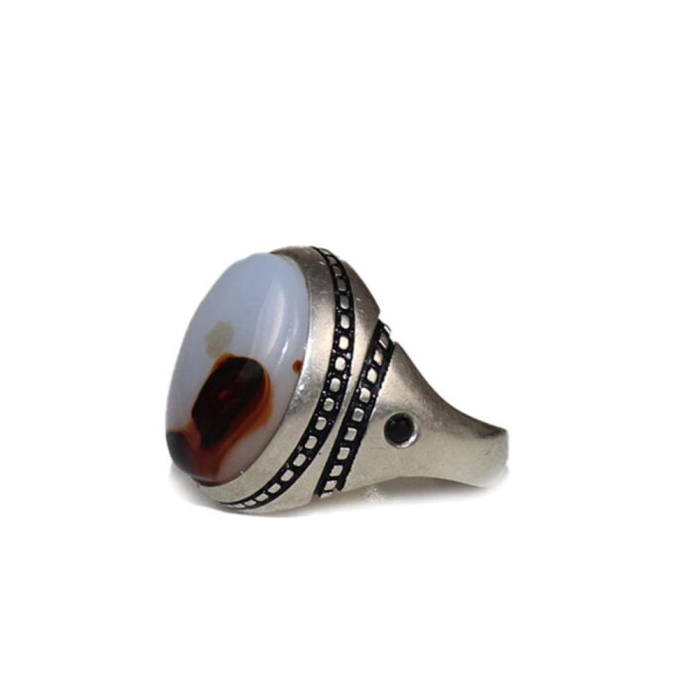 خاتم فضة وعقيق لون ابيض رجالي - J5