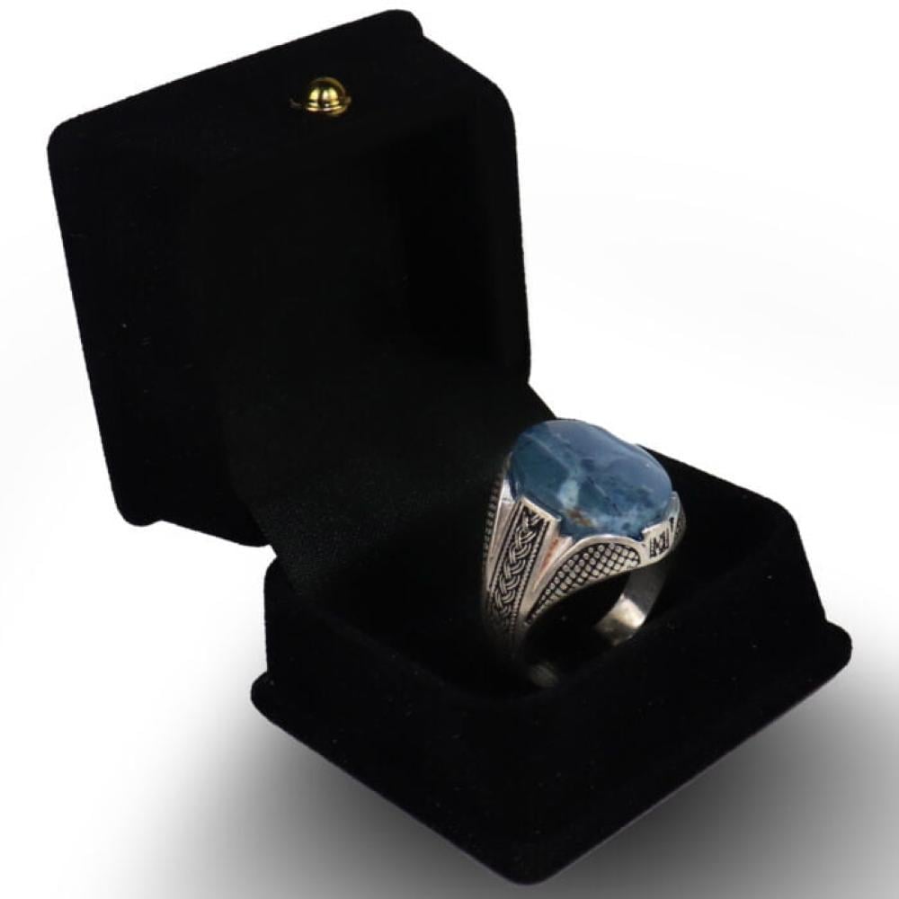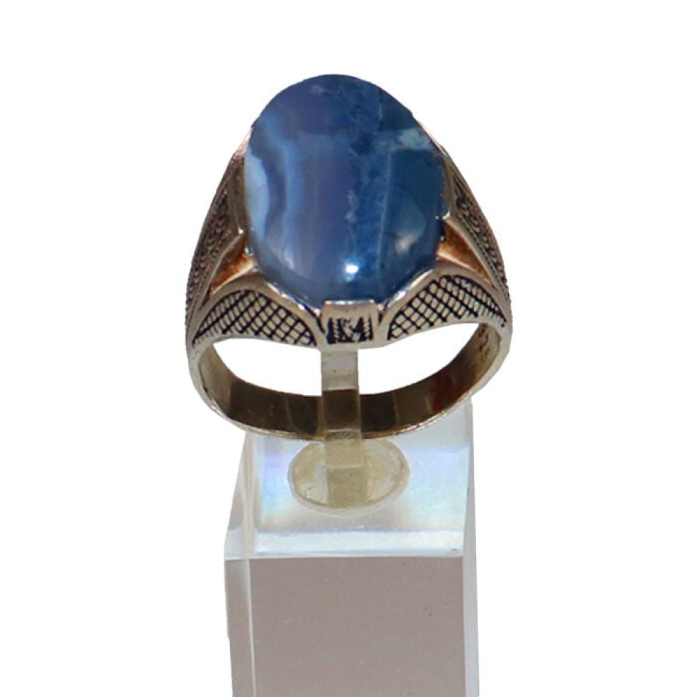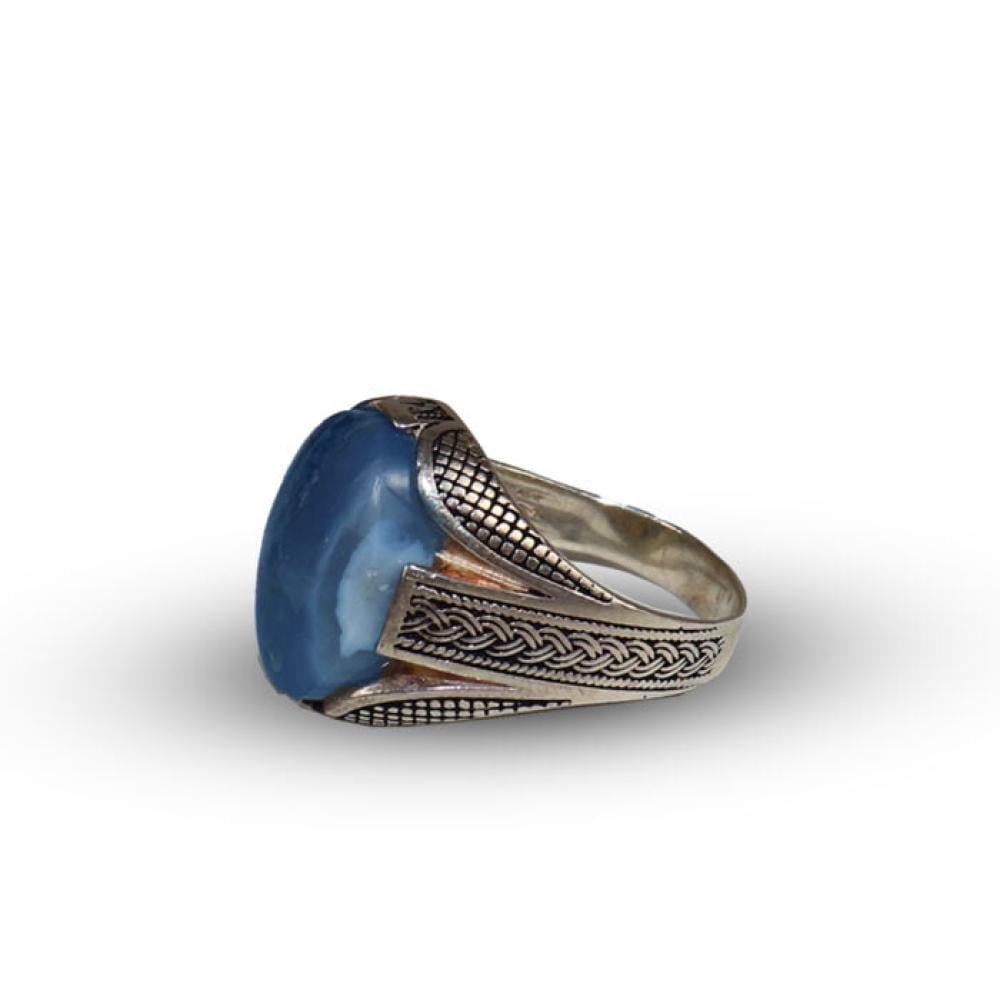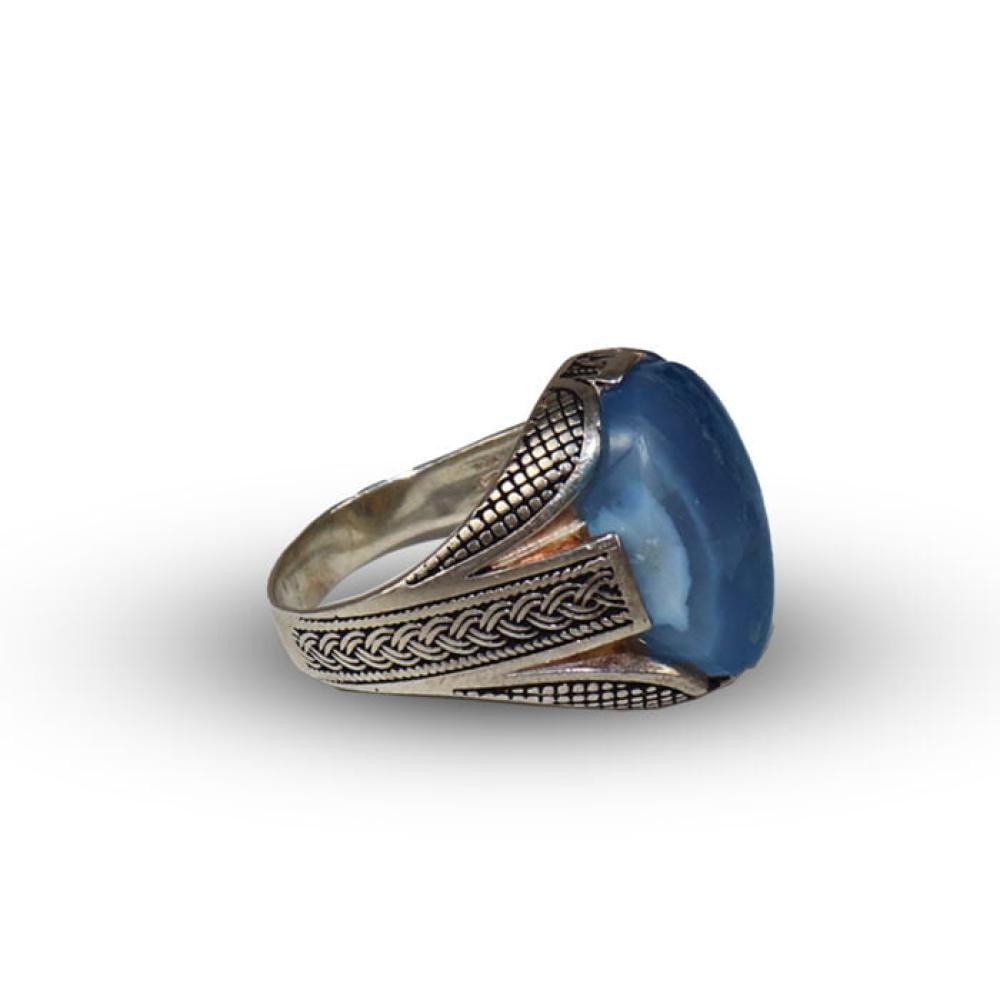 خاتم فضة وعقيق لون ازرق رجالي - G8