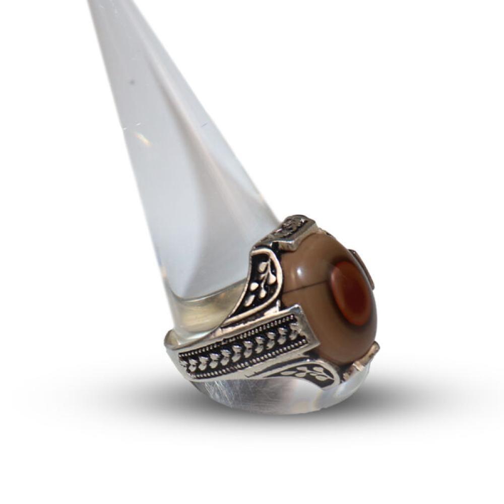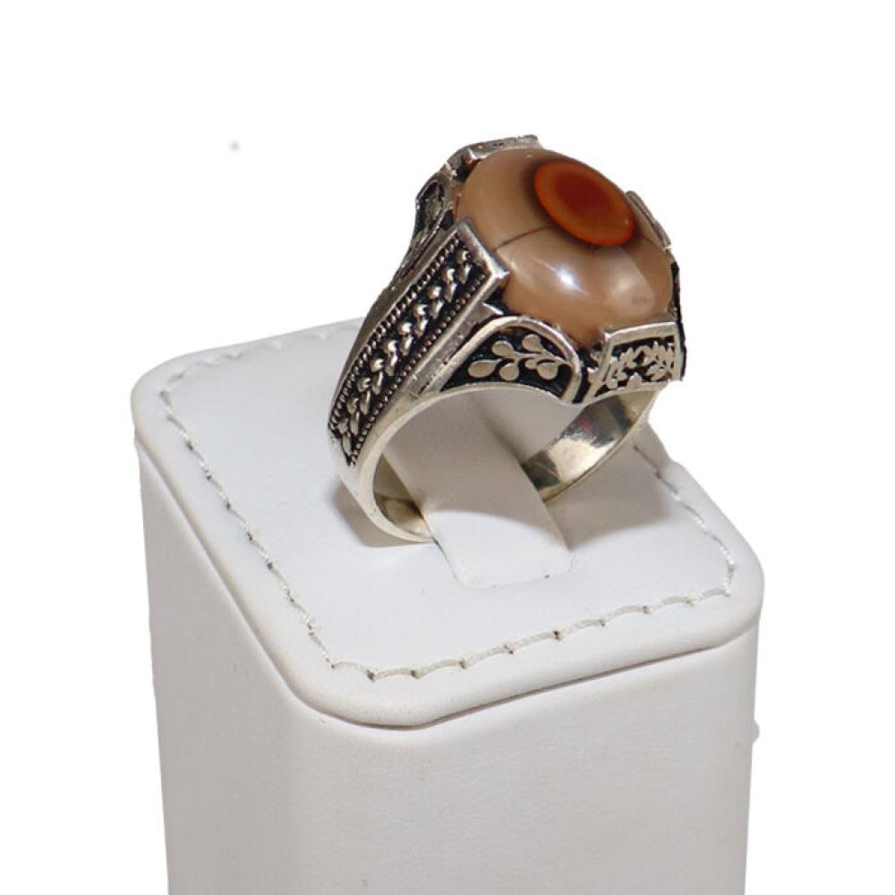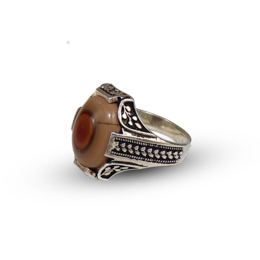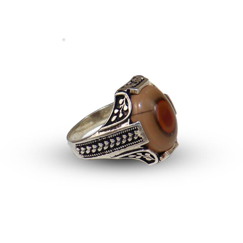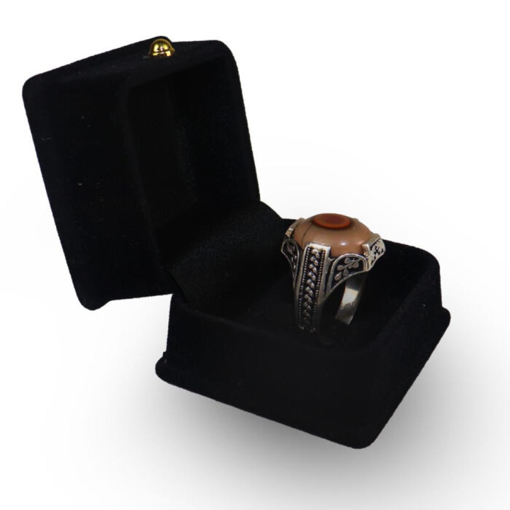 • في وسطه قطعة من العقيق اليماني الفاخر المصقول بشكل رائع و بتداخلات الوانها تعطي مزيج مختلف يزيد من جمال الخاتم .