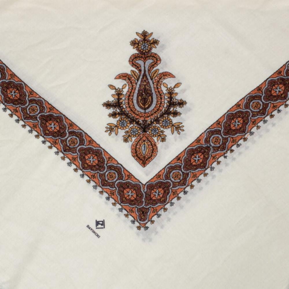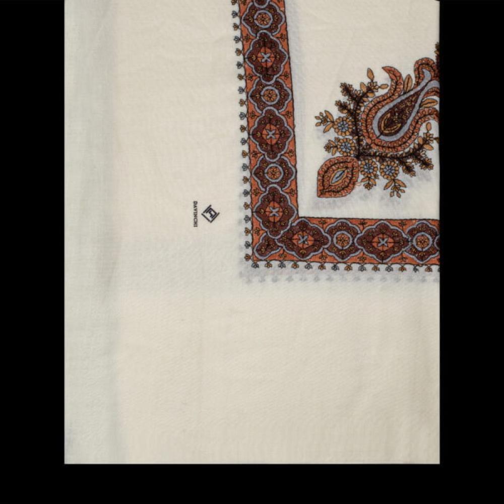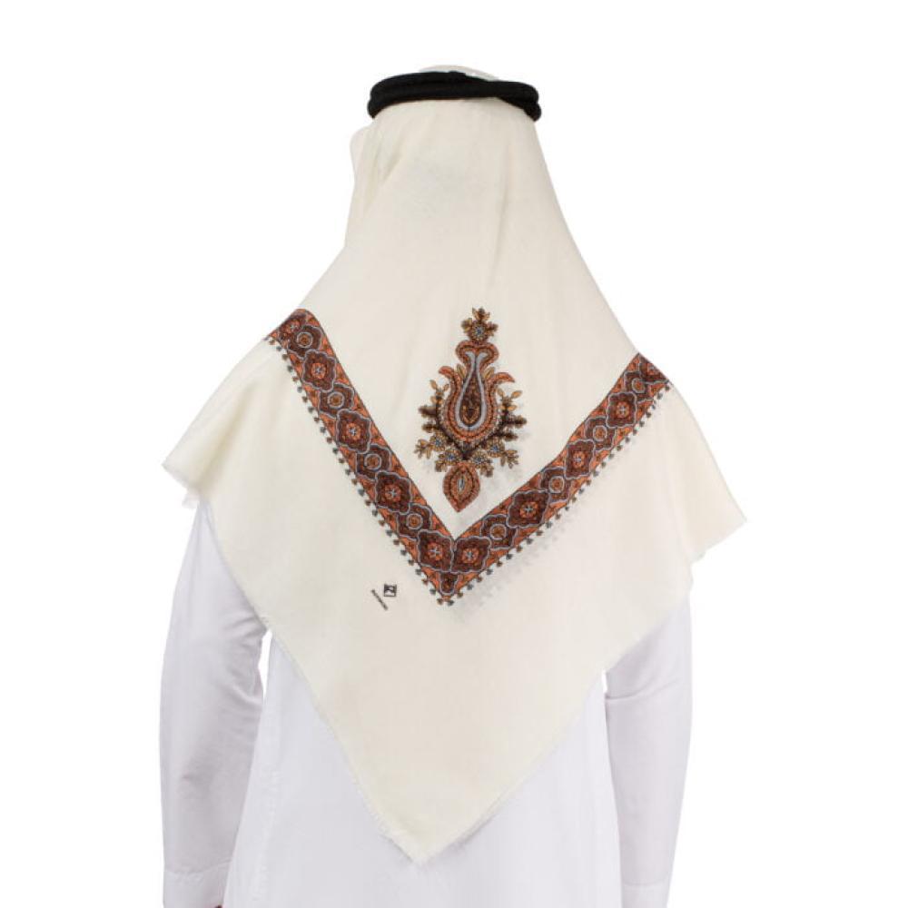 شال كشميري ابيض تطريز عودي وبني فاتح ماركة دافنشي