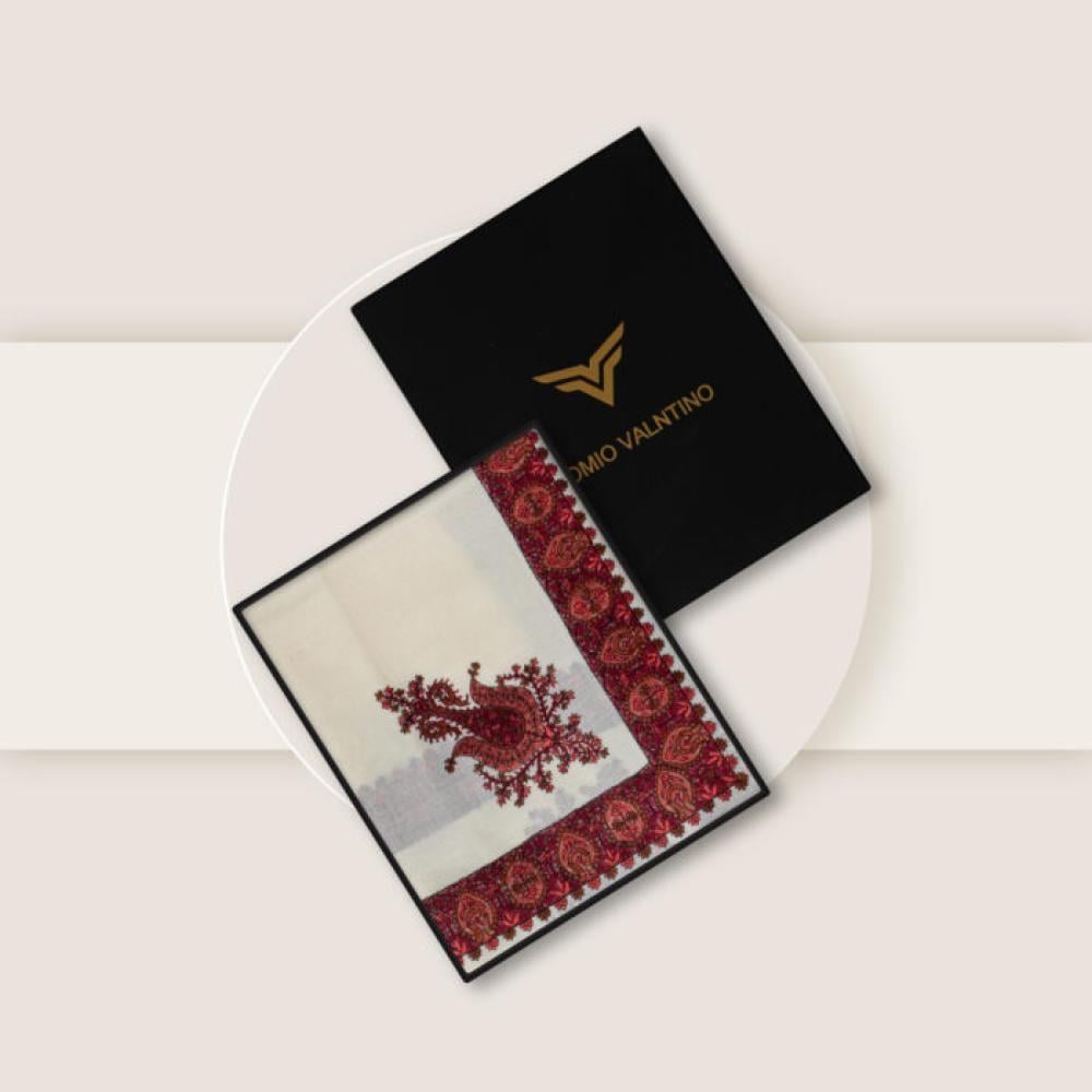 شال شتوي مطرز كشميري مميز مصنوع من ارقى انواع الخيوط الكشميرية والتي تم حياكتها بأفضل المعايير الفنية ليضفي عليها نعومة الملمس ودقة في التصميم مما يزيده شياكه وهيبه كما ان الشال مناسب جدا لفترة الشتاء مما يشعرك بالدفئ.