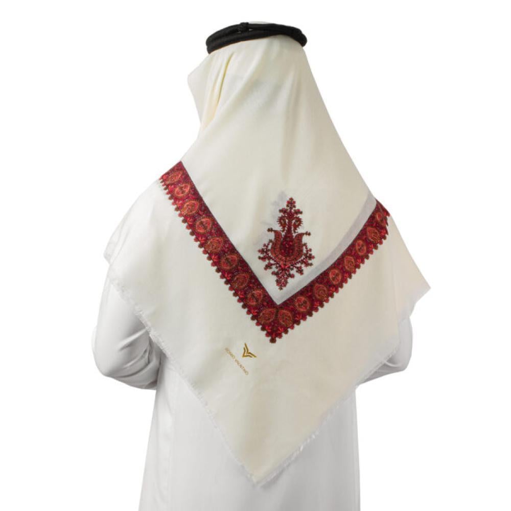 - يأتي الشال بلون ابيض مميز بعدة نقشات.