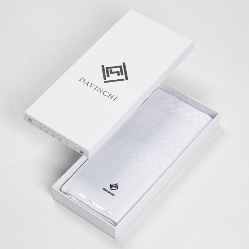 شماغ ابيض كلاسيك ماركة دافنشي من الاشمغه المميزة جدا حيث انها تجمع بين الشكل التقليدي الأصيل للشماغ والهوية الخليجية العربية العصرية والموضة الحديثة في شكل مختلف للتصميم والنقشه المصممة على الشماغ