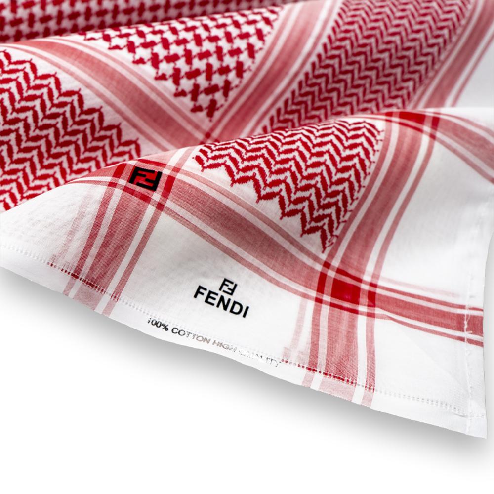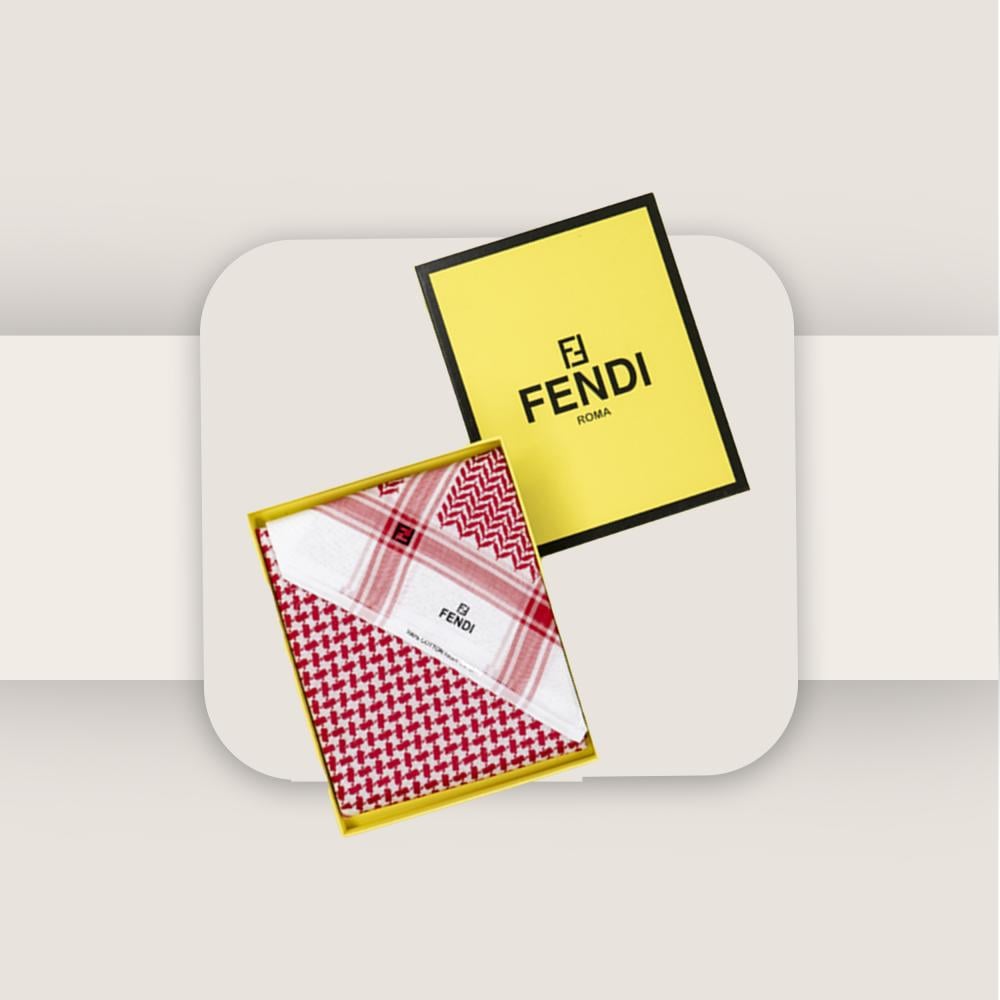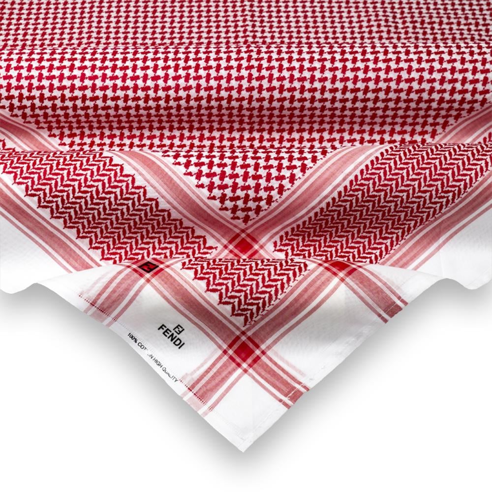 شماغ ماركة فندي من الاشمغه المميزة جدا حيث ان شماغ فندي كلاسيك احمر يجمع بين الشكل الأصيل للشماغ والهوية الخليجية العربية العصرية والموضة الحديثة في شكل مختلف للتصميم والنقشه المصممة على الشماغ.