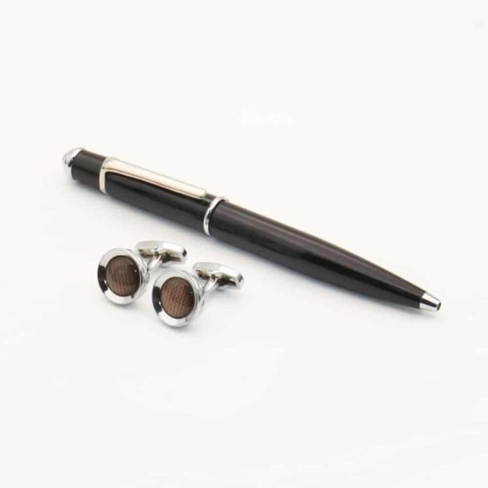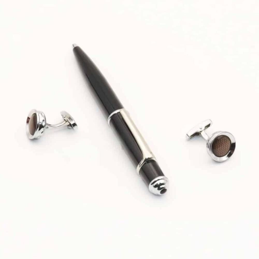 للطقم جمال اخاذ حيث يعطي القلم والكبك الثقة بالنفس.