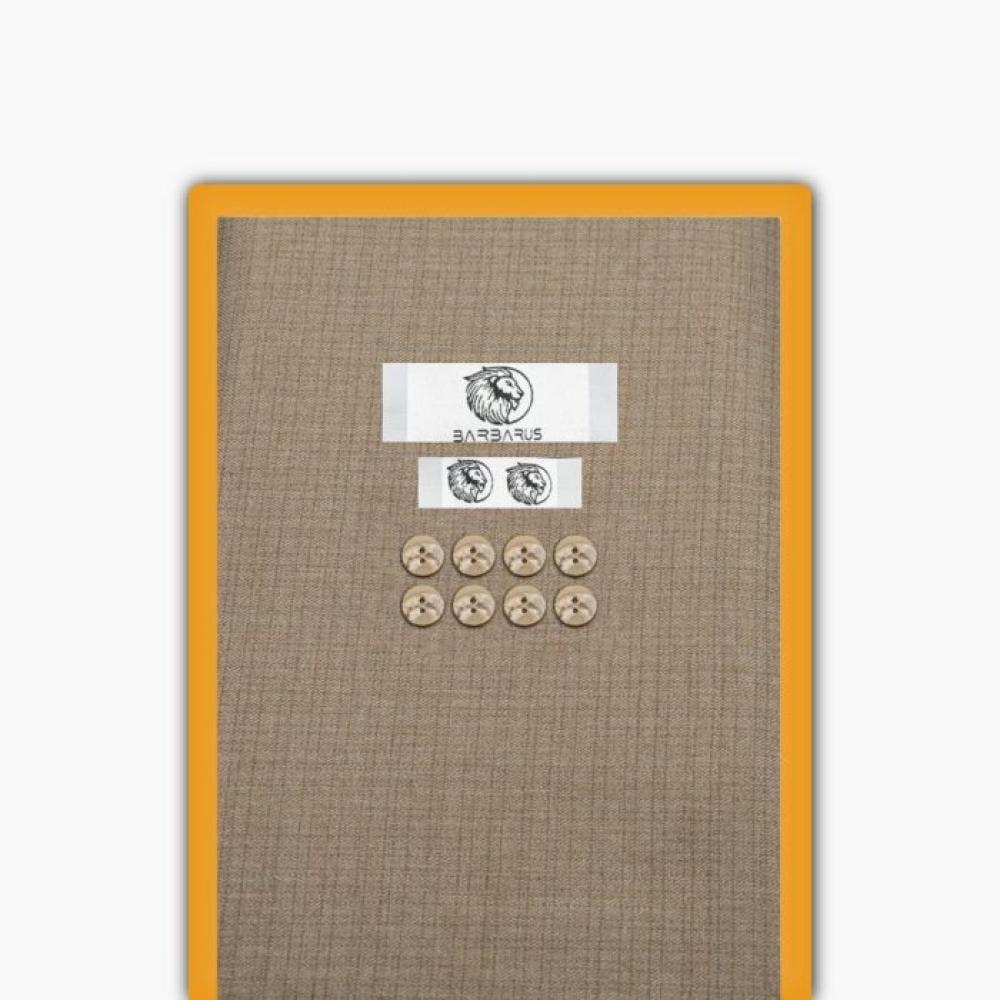 - القماش يأتي في علبة بوكس راقي بشكل مستطيل عليه شعار الماركة يحتوي على القماش مع كافة الملحقات من زراير واستيكرات عليها شعار الماركة توضع على الرقبة والجيب.